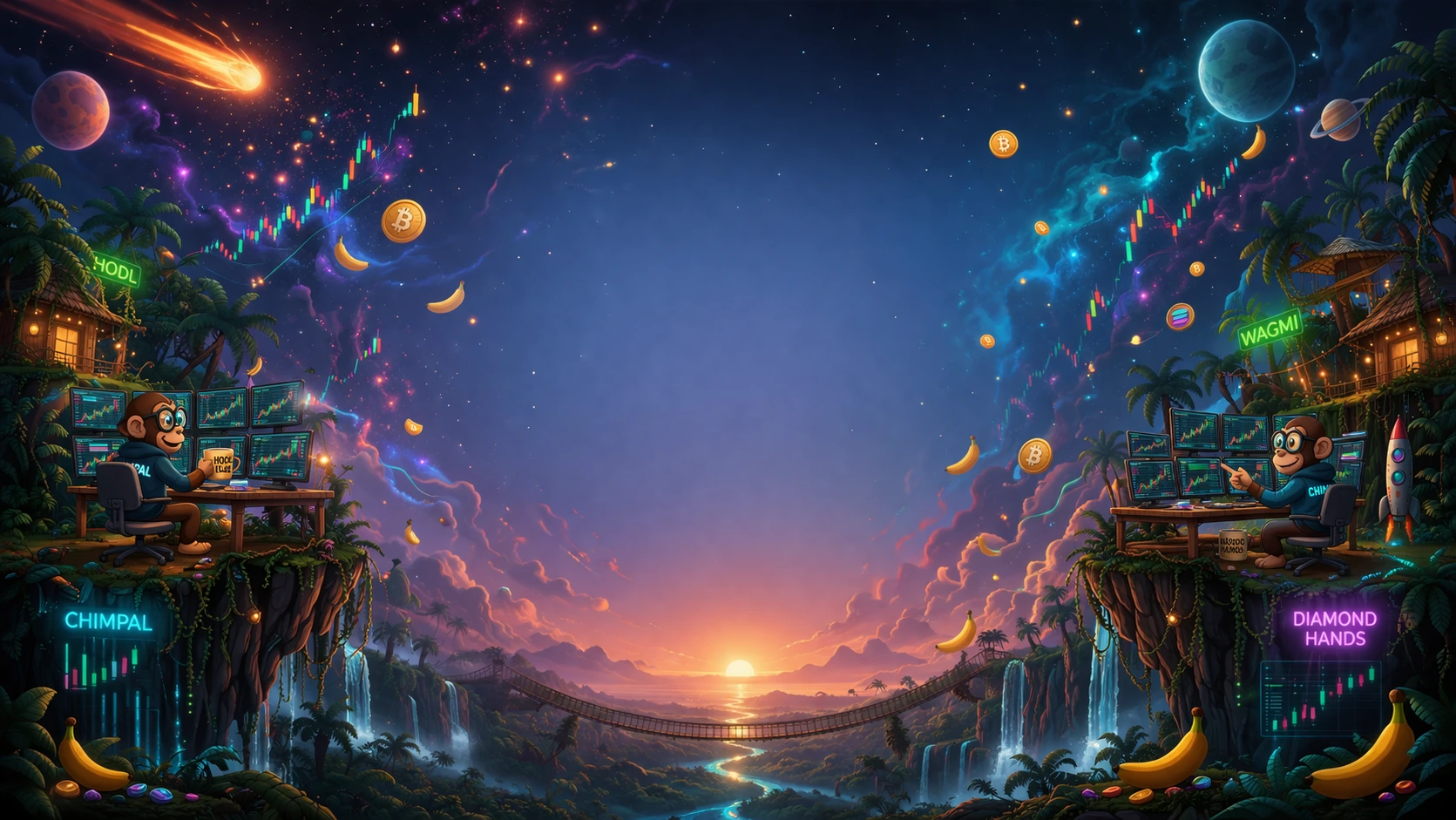 Memes, bananas, trading vibes, and radical honesty. No fake hype. No weird corporate cosplay. Just one friendly chimp swinging into Solana with the troop.